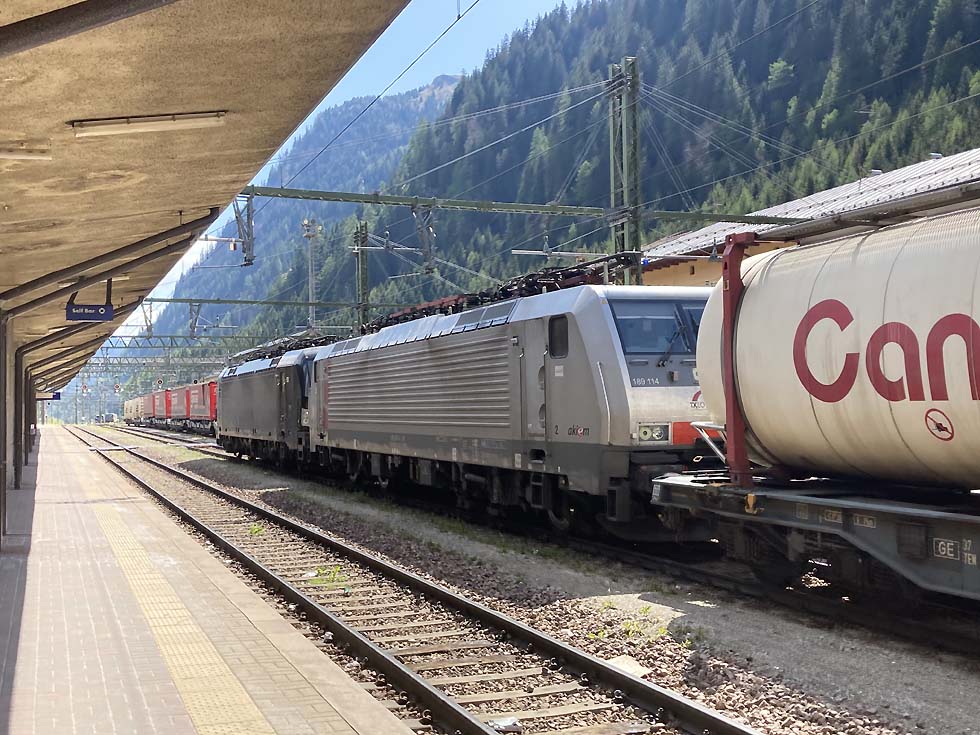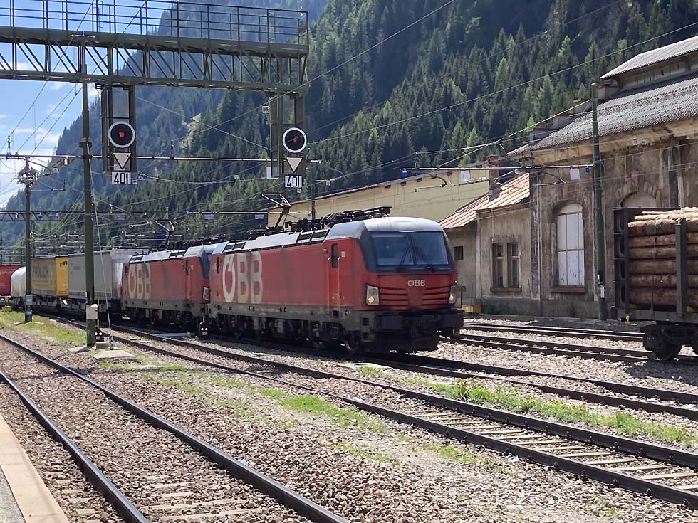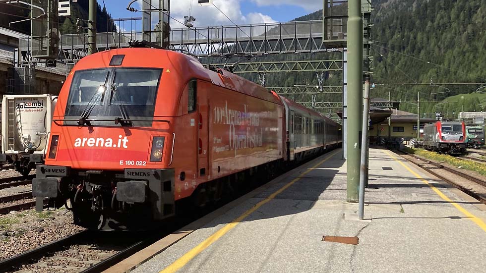 ![]() Bf Brennero Brenner – E 190 002 / 91 81 1216 002-6 A-ÖBB bei der Ausfahrt mit EC 84 DB-ÖBB EuroCity Bologna C – Verona PN – Brennero/Brenner Innsbruck Hbf – Kufstein - München Hbf aus dem Bahnhof Brenner, 25. Mai 2023. ![]() Bf Brennero Brenner – E 190 002 / 91 81 1216 002-6 A-ÖBB bei der Ausfahrt mit EC 84 DB-ÖBB EuroCity Bologna C – Verona PN – Brennero/Brenner Innsbruck Hbf – Kufstein - München Hbf aus dem Bahnhof Brenner, 25. Mai 2023. ![]() Bf Brennero/Brenner – E 190 022 / 91 81 1216 022-4 A-ÖBB arena.it erreicht mit EC 87 München Hbf - Kufstein - Innsbruck Hbf – Brennero/Brenner - Verona Porta Nuova von Innsbruck her den Bahnhof Brennero/Brenner. Noch ist der deutsche/örterreiche Bügel am Fahrdraht. EC 87 war am 25.5.23 mit Taurus 3 / E 190 022 / 91 81 1216 022-4 A-ÖBB arena.it bespannt, 25. Mai 2023. ![]() Bf Brennero/Brenner – E 190 022 / 91 81 1216 022-4 A-ÖBB arena.it erreicht mit EC 87 München Hbf - Kufstein - Innsbruck Hbf – Brennero/Brenner - Verona Porta Nuova von Innsbruck her den Bahnhof Brennero/Brenner. Die Lok ist nun abgebügelt und rollt bis zum Haltepunkt, 25. Mai 2023. ![]() Bf Brennero/Brenner – E 190 022 / 91 81 1216 022-4 A-ÖBB arena.it steht mit EC 87 München Hbf - Kufstein - Innsbruck Hbf – Brennero/Brenner - Verona Porta Nuova nun am Haltepunkt des Bahnhofs Brennero/Brenner. Die Lok hat inzwischen den italienischen Bügel am Fahrdraht, 25. Mai 2023. ![]() Bf Brennero/Brenner – E 190 022 / 91 81 1216 022-4 A-ÖBB arena.it mit EC 87 München Hbf - Kufstein - Innsbruck Hbf – Brennero/Brenner - Verona Porta Nuova von Innsbruck her den Bahnhof Brennero/Brenner. Hier bei der Ausfahrt gen Süden, 25. Mai 2023. ![]() Bf Brennero/Brenner – E 190 022 / 91 81 1216 022-4 A-ÖBB arena.it mit EC 87 München Hbf - Kufstein - Innsbruck Hbf – Brennero/Brenner - Verona Porta Nuova von Innsbruck her den Bahnhof Brennero/Brenner. Hier bei der Ausfahrt gen Süden, 25. Mai 2023. ![]() Bf Brennero/Brenner – EC 87 - Zuglauf München Hbf - Kufstein - Innsbruck Hbf – Brennero/Brenner - Verona Porta Nuova. In den Zugverband ist mindestens ein NightJet Seat Car eingereit. ![]() Bf Brennero/Brenner – Die neu lackierte 412 009 hat den Abstellplatz vor 412 003 verlassen und sich vor einen KLV-Zug gesetzt, 25. Mai 2023. ![]() Bf Brennero/Brenner – Die neu lackierte 412 009 hat den Abstellplatz vor 412 003 verlassen und sich vor einen KLV-Zug gesetzt, 25. Mai 2023. ![]() Bf Brennero/Brenner – Als nächstes hat 412 003 den Abstellplatz vor 494 009 verlassen und sich vor einen Zug offener Güterwagen gesetzt, 25. Mai 2023. ![]() Bf Brennero/Brenner – Als nächstes hat 412 003 den Abstellplatz vor 494 009 verlassen und sich vor einen Zug offener Güterwagen gesetzt, 25. Mai 2023. ![]() Bf Brennero/Brenner – 494 009 ist als nächsten dran und hat den Bügel bereits am Fahrdraht, 25. Mai 2023. ![]() Bf Brennero/Brenner – 494 009 ist als nächsten dran und hat den Bügel bereits am Fahrdraht, 25. Mai 2023. ![]() Ein weiterer KLV-Zug mit den Zug-Loks 193 648-3 D-DISPO und 189 114 D-AKIEM erreicht den Bahnhof Brennero/Brenner. Die Loks rollen abgebügelt in den Bahnhof, 25. Mai 2023. ![]() Ein weiterer KLV-Zug mit den Zug-Loks 193 648-3 D-DISPO und 189 114 D-AKIEM erreicht den Bahnhof Brennero/Brenner, 25. Mai 2023. ![]() Ein weiterer KLV-Zug mit den Zug-Loks 193 648-3 D-DISPO und 189 114 D-AKIEM erreicht den Bahnhof Brennero/Brenner, 25. Mai 2023. ![]() Ein weiterer KLV-Zug mit den Zug-Loks 193 648-3 D-DISPO und 189 114 D-AKIEM erreicht den Bahnhof Brennero/Brenner. Der italienische Bügel ist nun am Fahrdraht, 25. Mai 2023. ![]() Der KLV-Zug mit den Zug-Loks 193 648-3 D-DISPO und 189 114 D-AKIEM wartet am Bahnhof Brennero/Brenner auf Ausfahrt gen Süden. Aber EC 87 mit der 1216 022 hat Vorrang, 25. Mai 2023. ![]() Der KLV-Zug mit den Zug-Loks 193 648-3 D-DISPO und 189 114 D-AKIEM wartet am Bahnhof Brennero/Brenner auf Ausfahrt gen Süden. Aber EC 87 mit der 1216 022 hat Vorrang, 25. Mai 2023. ![]() Der KLV-Zug mit den Zug-Loks 193 648-3 D-DISPO und 189 114 D-AKIEM wartet am Bahnhof Brennero/Brenner auf Ausfahrt gen Süden, 25. Mai 2023.