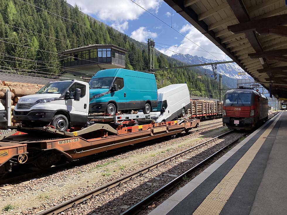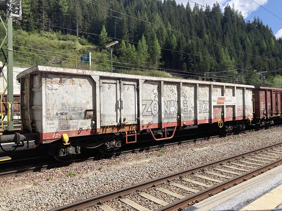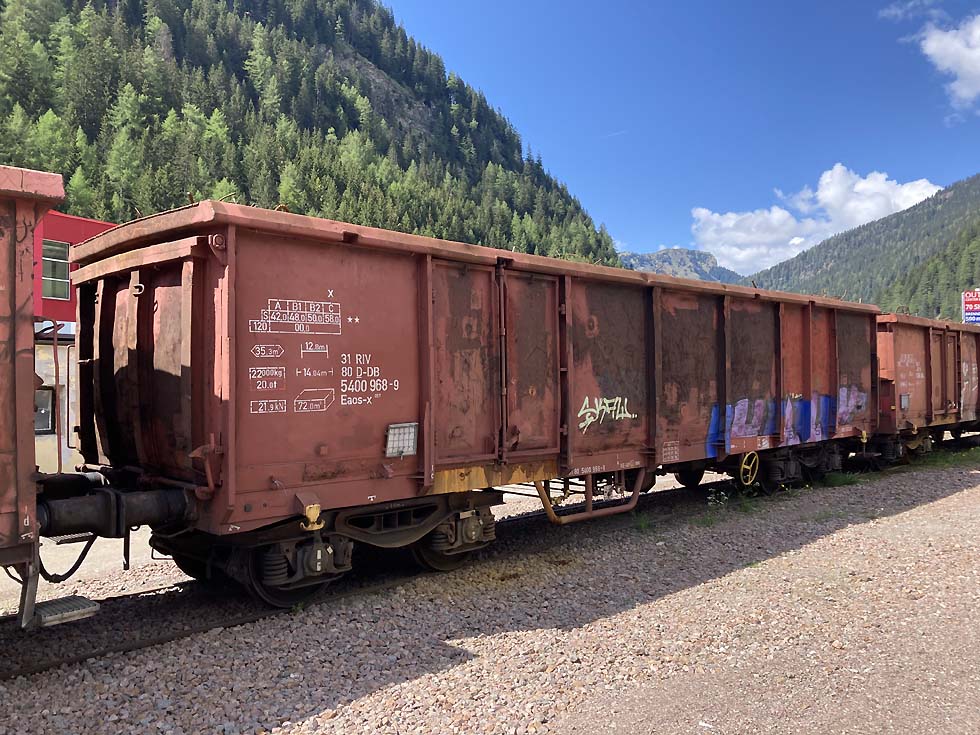 ![]() Bahnhof Brennero/Brenner – Straßenansicht, 25. Mai 2023. ![]() Bahnhof Brennero/Brenner – Abstellgleis auf der Straßenseite, 25. Mai 2023. ![]() 31 RIV 80 D-DB, 5400 968-9 Eaos–x 057 der DB, 25. Mai 2023. ![]() 37 TEN 80 D-RCW, 5932 006-9 Eanos der ERR, 25. Mai 2023. ![]() 31 TEN 81 A-RCW, 5380 054-1 Eanos der Rail Cargo Austria, 25. Mai 2023. ![]() Holztransport - RUNGENWAGEN MIT DREHGESTELLEN, HOHEN STIRNWÄNDEN 57 UND HOHEN FESTEN RUNGEN, 31 RIV 81 A-RCW, 3523 448-8 Rnoos-uz, 25. Mai 2023. ![]() Behältertransport - TRAGWAGEN MIT DREHGESTELLEN FÜR DEN KOMBINIERTEN VERKEHR, 35 TEN 80 D-RCW, 4956 135-2 Sdggmrss, 25. Mai 2023. Text und Bilder: Thomas Artmann |