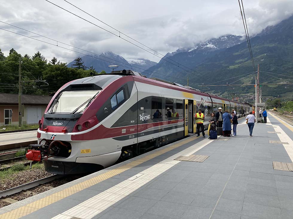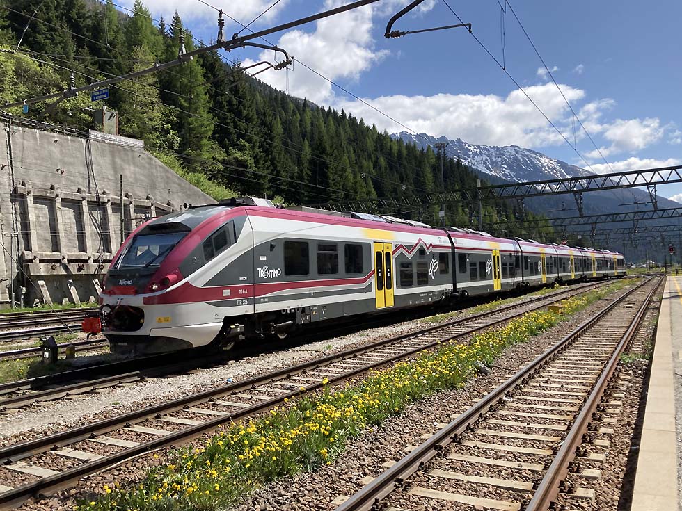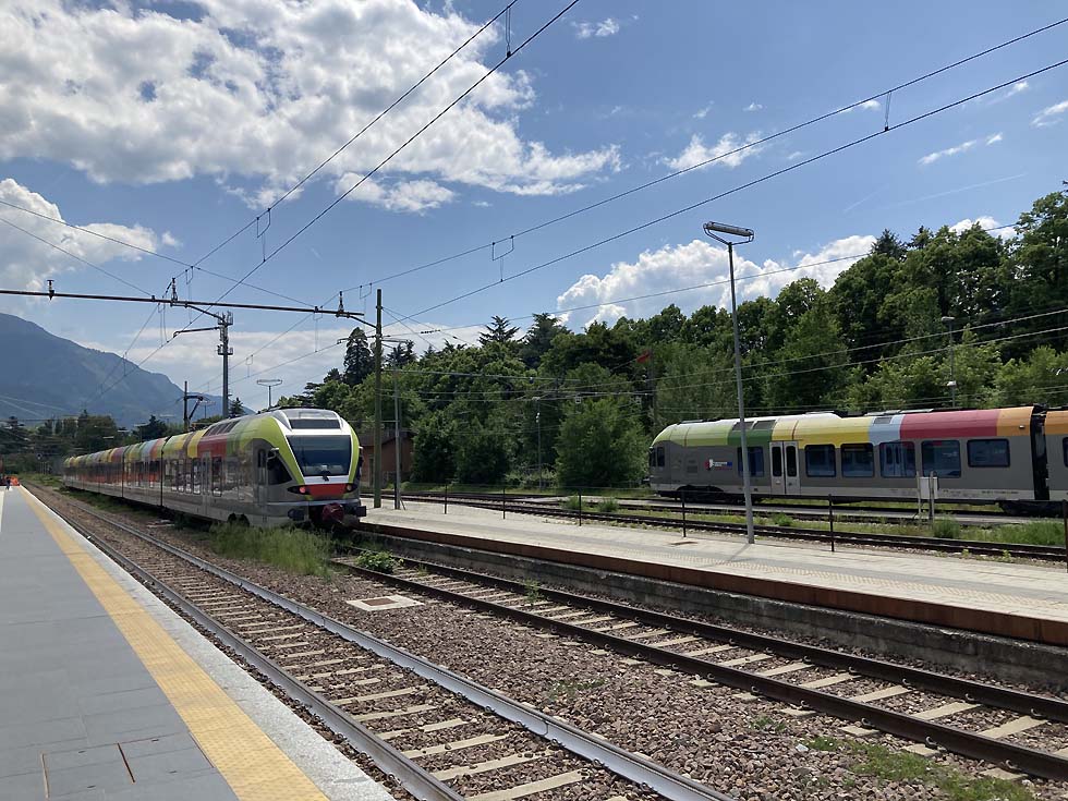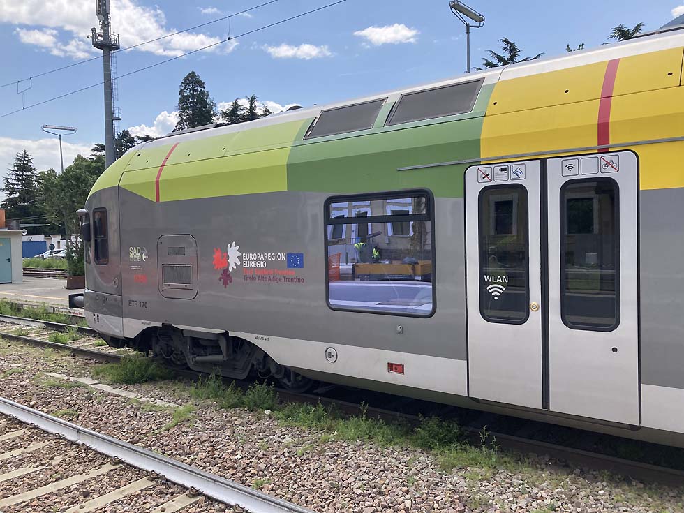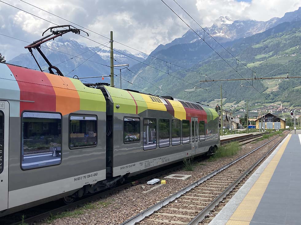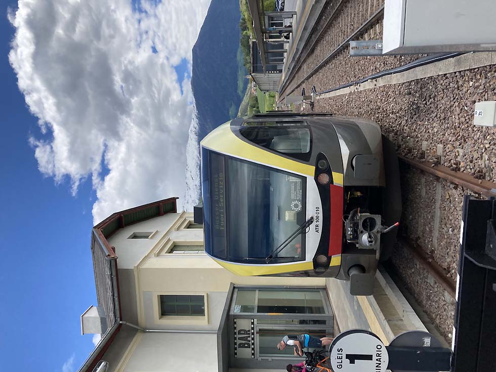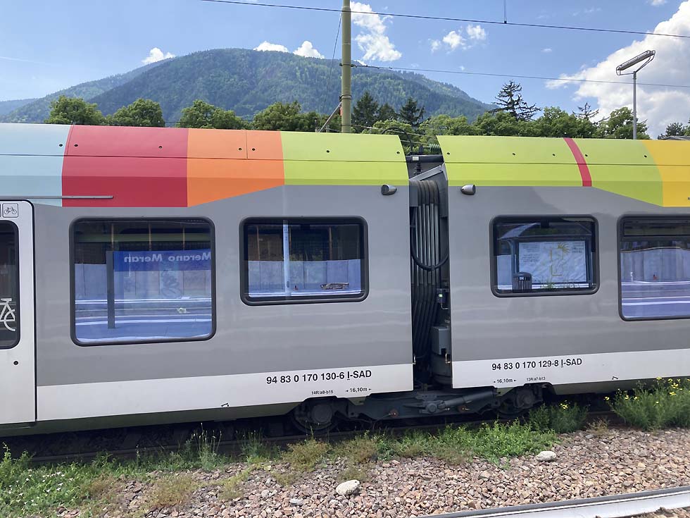 Ich war mit meiner Frau Mitte/Ende Mai 23 eine Woche in Meran im Urlaub. Der Hinweg führte uns über den Reschenpass und das Vinschgau nach Meran. Zurück ging es über den Brenner. Natürlich sind auch wieder Fotos zum Hobby entstanden. In Meran enstanden am 19. Mai 2023 die Aufnahmen des ETR 526 014 ![]() In Meran entstanden am 19. Mai 2023 die Aufnahmen des ETR 526 014 ![]() ETR 526 014 am 19. Mai 2023 in Meran ![]() ETR 526 014 am 19. Mai 2023 in Meran ![]() ETR 526 014 am 19. Mai 2023 in Meran ![]() ATR 100 008 ist am Do 18.05.2023 in Mals auf dem Gleis abgestellt, das, wenn man den Prellbock und die Bretterwand abbauen würde, prinzipiell zum Wendestern führt. ![]() ATR 100 010 steht am Do 18.05.2023 um 12.42 auf Gleis 1 im Bahnhof Mals und hält dort Mittagspause. Die Zugzielanzeige zeigt Außer Dienst. Von den ursprünglich 12 gelieferten Stadler GTW sind noch 11 in Betrieb. ATR 100 008 ging im April 2012 bei einem durch eine Mure verursachter Unfall verloren. Aktuell wird ein Inselbetrieb Mals – Töll gefahren. Zwischen Töll und Meran verkehren stattdessen derzeit Ersatzbusse.