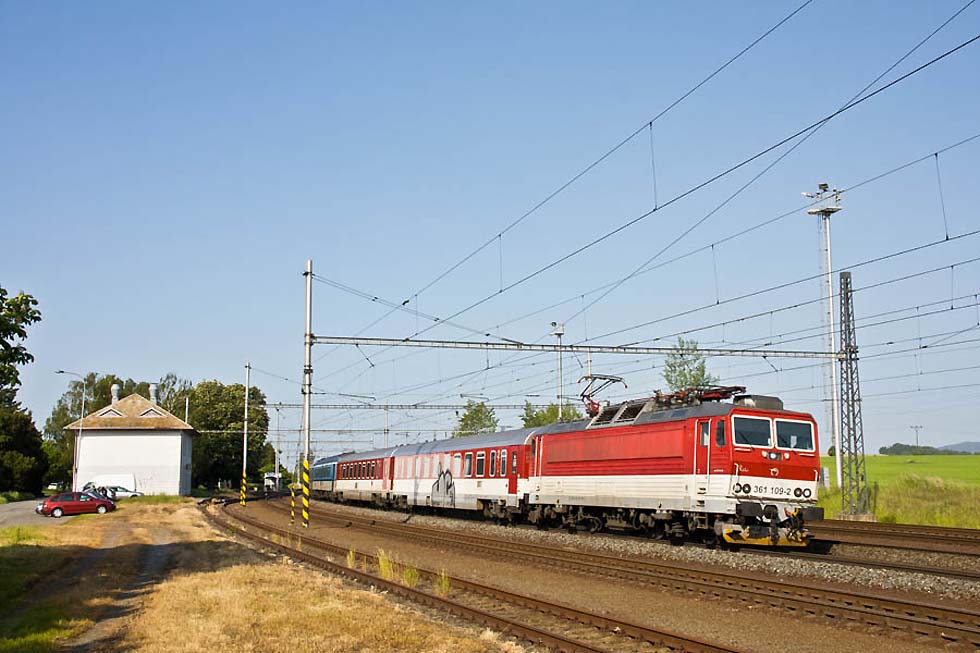Ein Pfingstwochenende in Tschechien! Alle Jahre wieder geht es dort ins Gleichstromnetz zwischen Prerov und Hranice, wo man sich aufgrund des Angebotes absolut nicht beklagen kann. Zur nächtlichen Stunde von daheim aus gestartet, erreichte ich mit Drahotuse das erste von vier Zielen bereits in den frühen Morgenstunden. Mit der 730 627 und ihrem wunderschönen Altbauklang bzw. der obligaten Duftwolke ging es auch schon los. Weitere Private liessen auch nicht lange auf sich warten, wobei der bevorstehende ETCS Wahn entlang der Hauptstrecken gewohnte Bilder wie den 680 schon bald verunmöglichen wird. ![]() 730 627 Drahotuse 27.05.2023 ![]() 193 885 186 361 Drahotuse 27.05.2023 ![]() 193 375 193 381 Drahotuse 27.05.2023 ![]() 460 023 Drahotuse 27.05.2023. Wer die wenigen noch im Einsatz befindlichen Exemplare der Reihe 460 noch erleben will, sollte sich beeilen: Per Fahrplanwechsel sollen sie nun endgültig Geschichte sein und von Neubaufahrzeugen abgelöst werden. ![]() 388 209 Drahotuse 27.05.2023 ![]() 388 209 Drahotuse 27.05.2023 ![]() 193 216 Drahotuse 08.06.2023 ![]() 151 012 Drahotuse 27.05.2023 ![]() 383 302 Drahotuse 27.05.2023 ![]() 742 714 Drahotuse 27.05.2023 ![]() 388 210 Drahotuse 27.05.2023 ![]() 383 201 Drahotuse 27.05.2023 ![]() 363 528 Drahotuse 27.05.2023 ![]() 460 011 460 012 Drahotuse 27.05.2023 ![]() 363 015 Drahotuse 27.05.2023 ![]() 361 109 Drahotuse 27.05.2023 ![]() 1216 954 Drahotuse 27.05.2023 ![]() 162 120 Drahotuse 27.05.2023 ![]() 680 001 Drahotuse 27.05.2023 ![]() 460 023 460 024 Drahotuse 27.05.2023 ![]() 363 519 Drahotuse 27.05.2023 ![]() 363 502 Drahotuse 27.05.2023 ![]() 460 080 Drahotuse 27.05.2023 ![]() 193 392 Drahotuse 27.05.2023 ![]() 363 044 Drahotuse 27.05.2023 ![]() 388 211 Drahotuse 27.05.2023 ![]() 130 001 Drahotuse 27.05.2023 ![]() 680 003 Drahotuse 27.05.2023 ![]() 740 848 Drahotuse 27.05.2023 ![]() 193 689 Drahotuse 27.05.2023 ![]() 388 214 Drahotuse 27.05.2023 ![]() 1216 235 Drahotuse 27.05.2023 ![]() 388 201 Drahotuse 27.05.2023 ![]() 193 234 Drahotuse 27.05.2023 ![]() 460 079 460 080 Drahotuse 27.05.2023 ![]() 123 016 Drahotuse 27.05.2023 ![]() 151 023 Drahotuse 27.05.2023 ![]() 151 023 Drahotuse 27.05.2023 ![]() 480 005 Drahotuse 27.05.2023 ![]() 460 011 460 012 Drahotuse 27.05.2023 ![]() 151 007 Drahotuse 27.05.2023 ![]() 1293 178 1293 177 Drahotuse 27.05.2023 ![]() 361 129 Drahotuse 27.05.2023 ![]() 480 003 Drahotuse 27.05.2023 ![]() 1216 954 Drahotuse 27.05.2023 ![]() 150 203 Drahotuse 27.05.2023 ![]() 363 513 Drahotuse 27.05.2023 ![]() Mit Rokytnice und Brodek wurden diesmal zwei neue Standpunkte ausprobiert. Beide Plätze liegen oberhalb von Prerov auf dem Weg nach Olmütz: Hier ist das Angebot dann schon etwas dünner als an den vorherigen Plätzen. Doch mit etwas Geduld bekommt man auch hier schöne Sachen zu sehen wie 749 181, die sich mit ihrem Kesselwagenzug die leichte Steigung hinauf gemüht hat: Akustisch und vom Geruch ein wahrer Genuss! 193 689 Rokytnice 27.05.2023 ![]() 680 004 Rokytnice 27.05.2023 ![]() 383 051 Rokytnice 27.05.2023 ![]() 749 181 Rokytnice 27.05.2023 ![]() 362 109 Rokytnice 27.05.2023 ![]() 193 695 Rokytnice 27.05.2023 ![]() 123 003 Rokytnice 27.05.2023 ![]() 660 105 Rokytnice 27.05.2023 ![]() 151 011 Rokytnice 27.05.2023 ![]() 480 004 Rokytnice 27.05.2023 ![]() 163 083 Rokytnice 27.05.2023 ![]() 151 007 Rokytnice 27.05.2023 ![]() 162 112 Rokytnice 27.05.2023 ![]() 162 115 Rokytnice 27.05.2023 ![]() 363 245 Rokytnice 27.05.2023 ![]() 193 686 Rokytnice 27.05.2023 ![]() 480 004 Rokytnice 27.05.2023 ![]() 193 690 Rokytnice 27.05.2023 ![]() 362 113 Rokytnice 27.05.2023 ![]() 383 062 140 045 Rokytnice 27.05.2023 ![]() 680 003 Rokytnice 27.05.2023 ![]() 680 003 Rokytnice 27.05.2023 ![]() 383 057 Rokytnice 27.05.2023 ![]() 350 013 Rokytnice 27.05.2023 ![]() 383 052 Rokytnice 27.05.2023 ![]() 362 114 Rokytnice 27.05.2023 ![]() 383 421 Rokytnice 27.05.2023 ![]() 193 699 Rokytnice 27.05.2023 ![]() 130 039 Rokytnice 27.05.2023 ![]() 362 112 Brodek 27.05.2023 ![]() 162 116 Brodek 27.05.2023 ![]() 193 686 Brodek 27.05.2023 Der Nahverkehr wurde anstatt eines 460 durch Lok mit Klasse gebildet, im Triebwagenzeitalter eine fast schon ungewohnte Erscheinung. Und wo wir schon bei den Triebwagen sind: Das Erscheinungsbild der Leo Triebwagen lässt auch zu wünschen übrig. Vollständig beschriftete Fahrzeuge zu erwischen, ist dort auch nicht mehr so einfach. Nachdem das Aufgebot mit den späten Nachmittags- bzw. frühen Abendstunden immer dünner wurde, und sich auch kein Privater mehr blicken ließ, wurde die Kamera nach Brodek eingepackt und der Weg ins Hotelzimmer angetreten! Text und Bilder: Raimund Whynal |