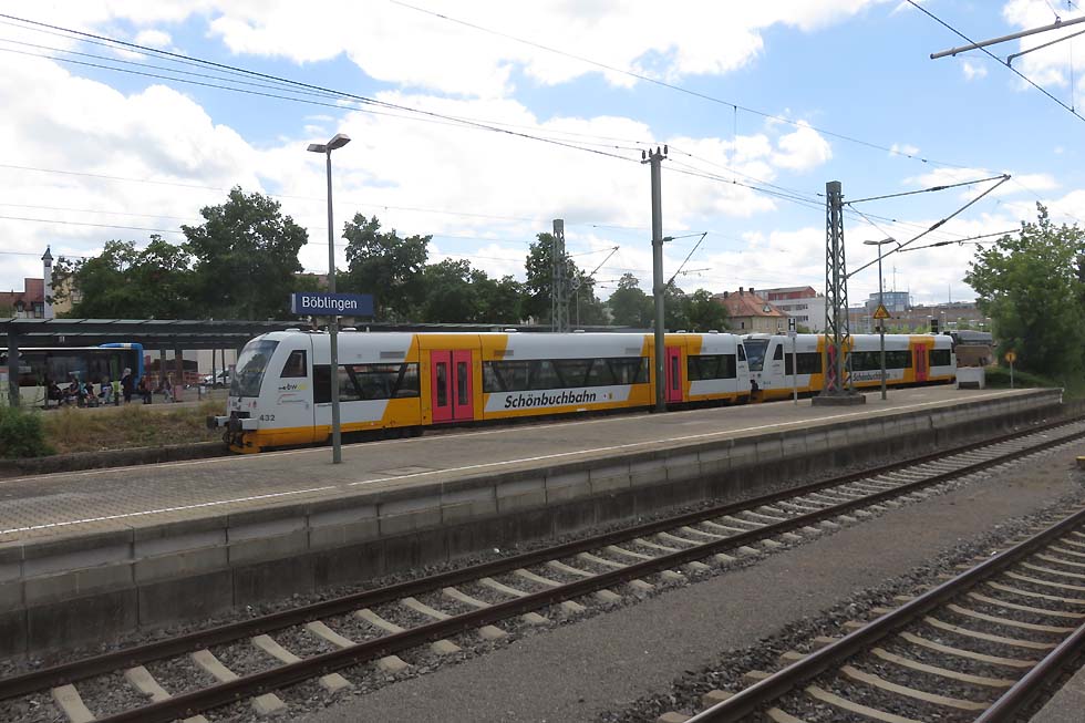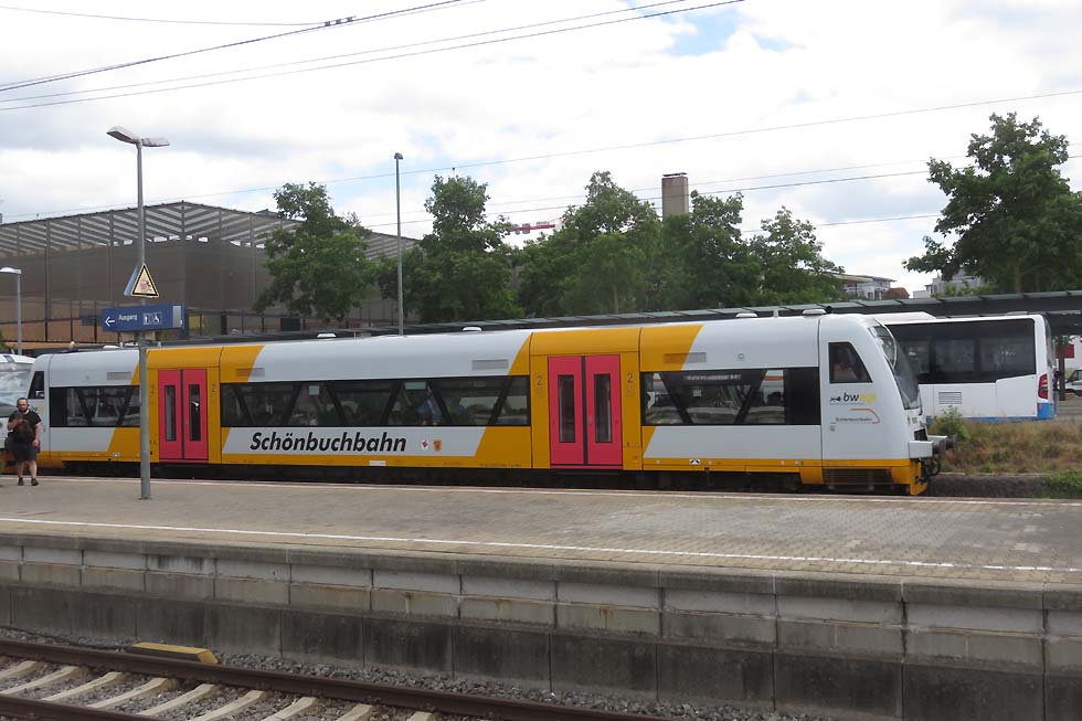 Am 20. Juni 2023 habe ich der Schönbuchbahn, genauer gesagt, deren Endpunkt Dettenhausen einen Besuch abgestattet. https://www.schoenbuchbahn.de/start.html https://de.wikipedia.org/wiki/Sch%C3%B6nbuchbahn Die Strecke Böblingen – Dettenhausen wurde 1996 im Schienenpersonennahverkehr reaktiviert, 2016 bis 2018 elektrifiziert und abschnittsweise zweigleisig ausgebaut. Betrieben wird die Strecke von der Württembergischen Eisenbahngesellschaft (WEG).