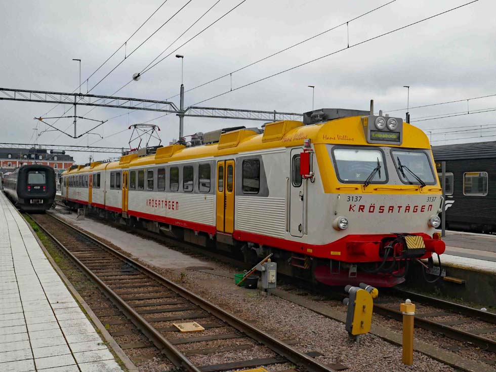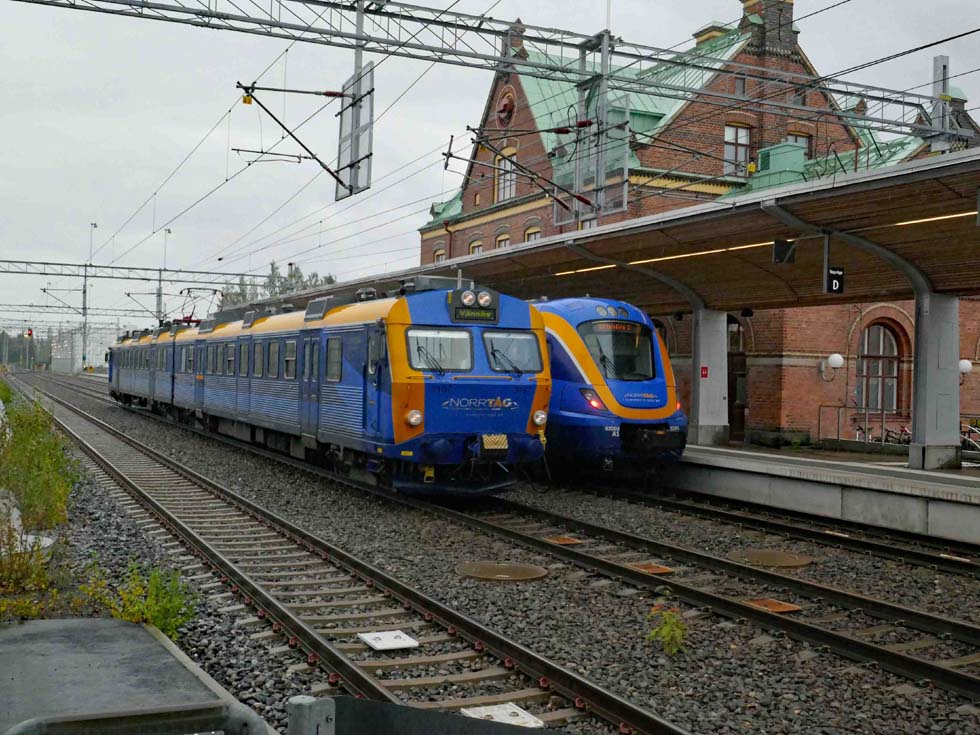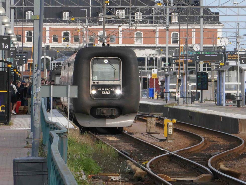![]() Vor der Überfahrt nach Schweden haben wir noch in Deutschland an der Ostsee 1 Tag Pause eingelegt. Ein Spaziergang entlang der Ostsee führte uns nach Bad Kühlungsborn – viele schöne alte Gebäude, leider meist verfallen und nebenan neue, meist geschmacklose Betonbunker für Investoren. Aber Kühlungsborn hat noch was Schönes zu bieten: die Molli. Wir konnten die Einfahrt der Neubaulokomotive 99 2324-4 und die regelmäßige Zugkreuzung beobachten. Wenigstens in diesem Punkt gibt es hier noch eine schöne, regelmäßige Tradition. ![]() Wir sind in Schweden angekommen. In Malmö treffen wir die Nostalgie-Straßenbahn Nr. 20. Die Saison der Nostalgiefahrten für Touristen ist vorbei, sie fährt „Außer Betrieb“ (EJ I TRAFIK) mit einem Arbeitsanhänger durch Malmö. ![]() 9374 302 2034-6 X2K der SJ steht abfahrbereit nach Stockholm im Hauptbahnhof Malmö mit seiner schönen alten Bahnsteigüberdachung. ![]() 9374 302 2034-6 X2K der SJ steht abfahrbereit nach Stockholm im Hauptbahnhof Malmö mit seiner schönen alten Bahnsteigüberdachung. ![]() 62003 der Bahngesellschaft NORRTAG wartet im Bahnhof Umea den Gegenzug ab. ![]() 3167 und 62003 der Bahngesellschaft NORRTAG kreuzen sich im Bahnhof Umea. ![]() 3167 der Bahngesellschaft NORRTAG im Bahnhof Umea vor der Weiterfahrt nach Vännäs. ![]() Auf der Suche nach dem Härnösands Bilmuseum (Automuseum - leider schon länger geschlossen) finden wir die gut gepflegte Dampflok 1287 „Astrid“ in Härnösand. ![]() An einem Bahnübergang in Härnösand rauscht 1121 an uns vorbei eine Rd2 von Green Gargo und verschwindet gleicht unter der Bebauung. ![]() Der Zugangsbereich zur Tunnelbanestation (entspricht Metro) Kungsträdgarden, einer besonders gestalteten und ausgeschmückten Metrostation in Stockholm.