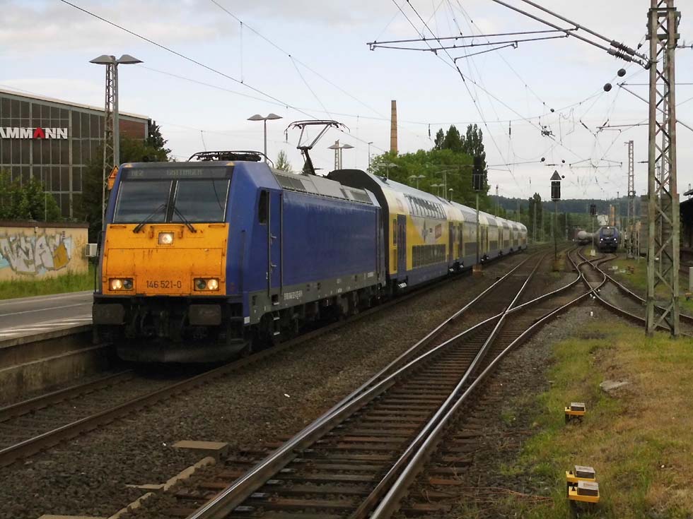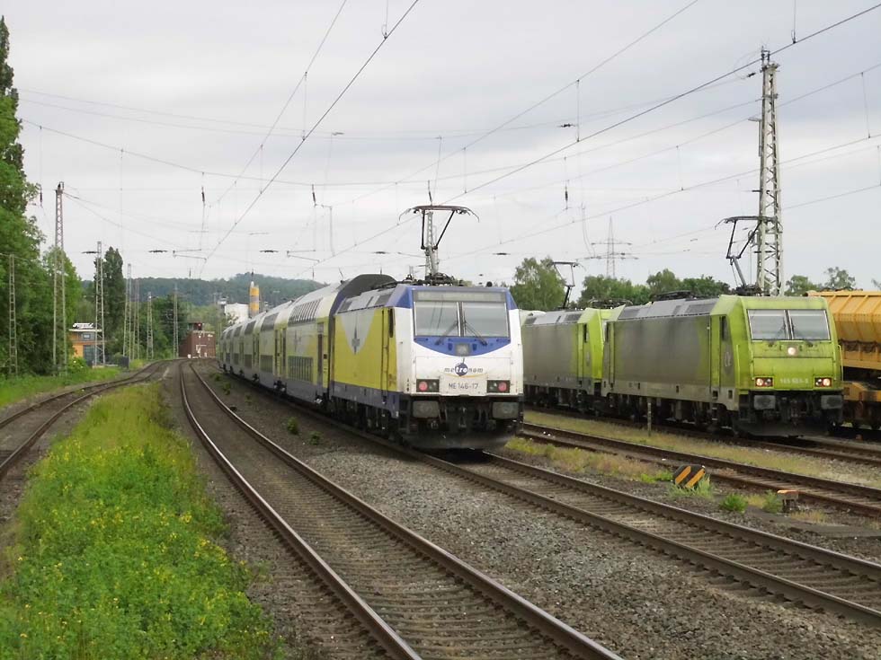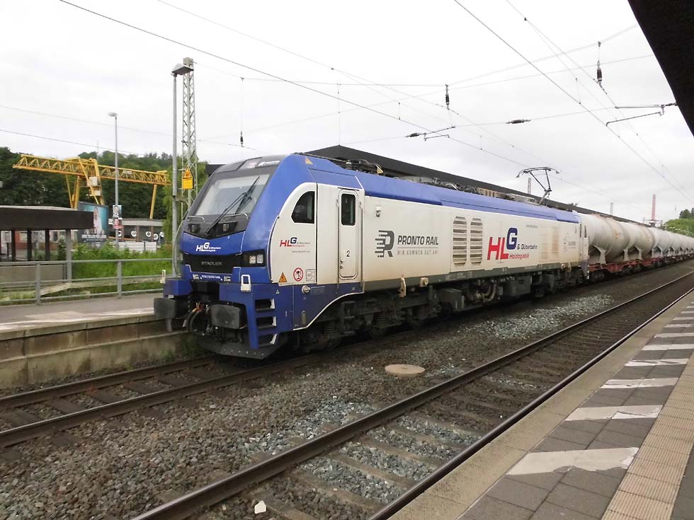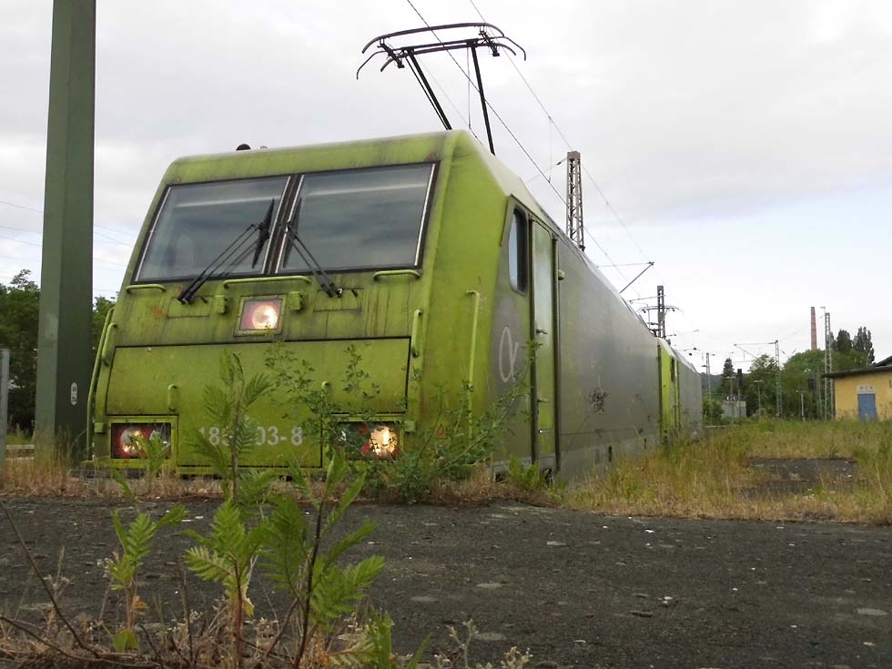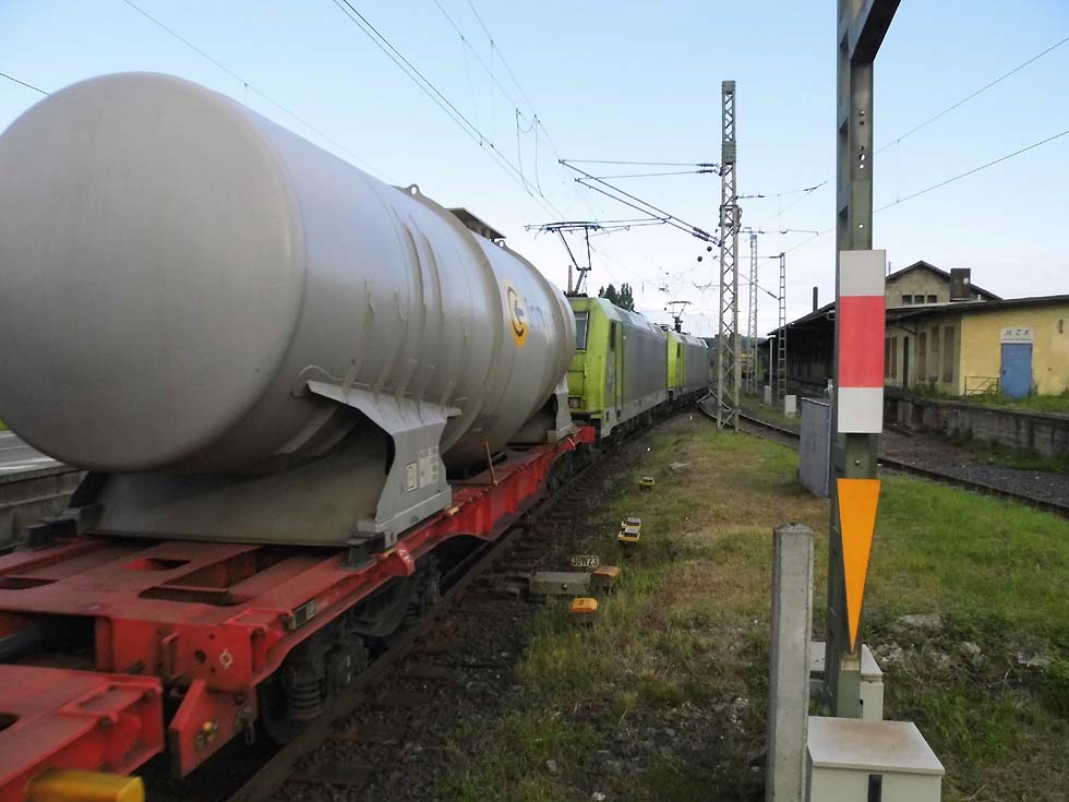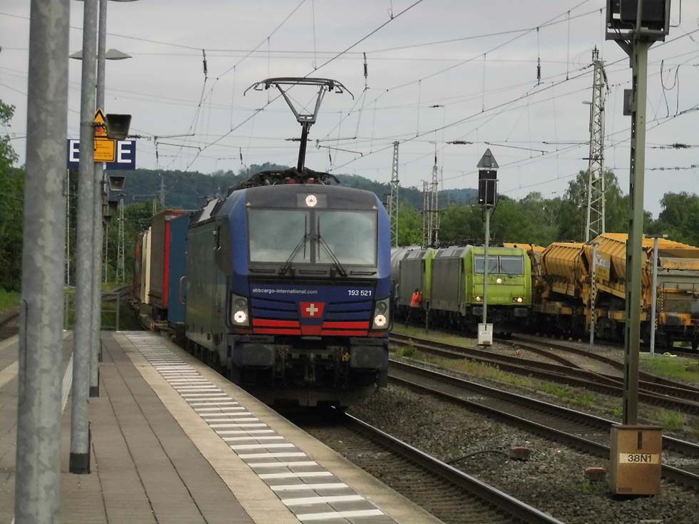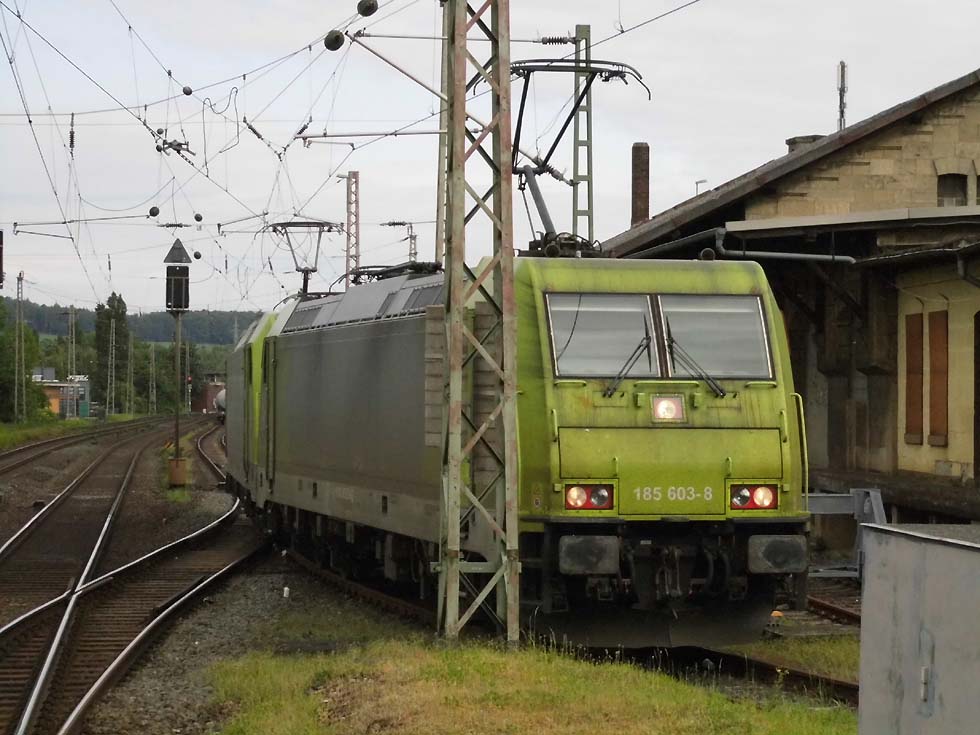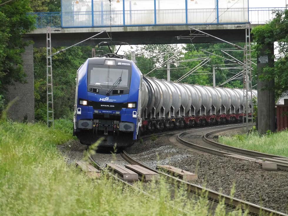 ![]() Zunächst fährt 187 152 mit allerhand Gütern in Richtung Göttingen. ![]() Nun kommt der Zug, der zur Seite muss: die Alpha-Tierchen 185 630 und 185 603 mit einem vollen Kalilaugenzug. ![]() Langsam geht die Fahrt nach Gleis 11. ![]() Nun könnte die Geschichte vorbei sein – 146 537 überholt mit dem RE2 nach Hannover nach dem halt in Alfeld den Laugenzug. ![]() Aber dann kommt 2159 215 mit dem nächsten Kalilaugenzug ums Eck und passiert den Kollegen im Ausweichgleis mit Pfiff zum Gruße. ![]() Und dann rollen 185 630 und 185 603 ins Stumpfgleis an der alten Laderampe, nachdem sie den Zug abgehängt haben... ![]() Sieht aus wie ein etwas ungepflegter Garten mit exklusiver Gartenlaube... ![]() Sieht aus wie ein etwas ungepflegter Garten mit exklusiver Gartenlaube... ![]() Um die Spannung noch zu erhöhen, ist inzwischen 2159 446 mit einem Laugenleerzug aus Norden in Gleis 12 eingelaufen. Langsam schwant mir, was hier passiert. ![]() 146 521 mit RE2 nach Göttingen passiert die Laugenzüge. ![]() 2159 446 hat abgehängt und zieht ins Hauptgleis vor, um die Züge zu umfahren – man will die Loks wechseln! ![]() Die Rangiererlaubnis ist erteilt, letzte Worte werden gewechselt, dann wird 2159 446 den vollen Zug bespannen und die 185er übernehmen den Leerzug. ![]() 2159 446 auf dem Weg ans andere Ende. ![]() 185 603 und 185 630 machen sich auf an ihren neuen Zug. ![]() Das sieht ein wenig nach Riesenslalom aus... ![]() Anhängen, Bremsprobe und warten auf den Abfahrauftrag. ![]() 193 521 mit ihrem KLV-Zug fährt südwärts am Geschehen vorbei. ![]() 146 517 mit RE2 muss erst noch passieren, bevor 185 603 und 185 630 zurück ins Kalirevier fhren können. ![]() Dann rollt auch noch die neue 188 068 von CFL Cargo mit einem Containerzug in Gleis 3 ein... ![]() …und für 185 603 und 185 630 geht es endlich weiter, in der Bahnhofsausfahrt werden sie auch auf die richtige Seite wechseln. ![]() 2159 216 mit dem nächsten Laugenleerzug muss deshalb erstmal warten.... Text und Bilder: Thomas Förster |