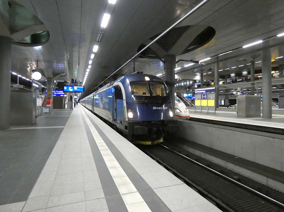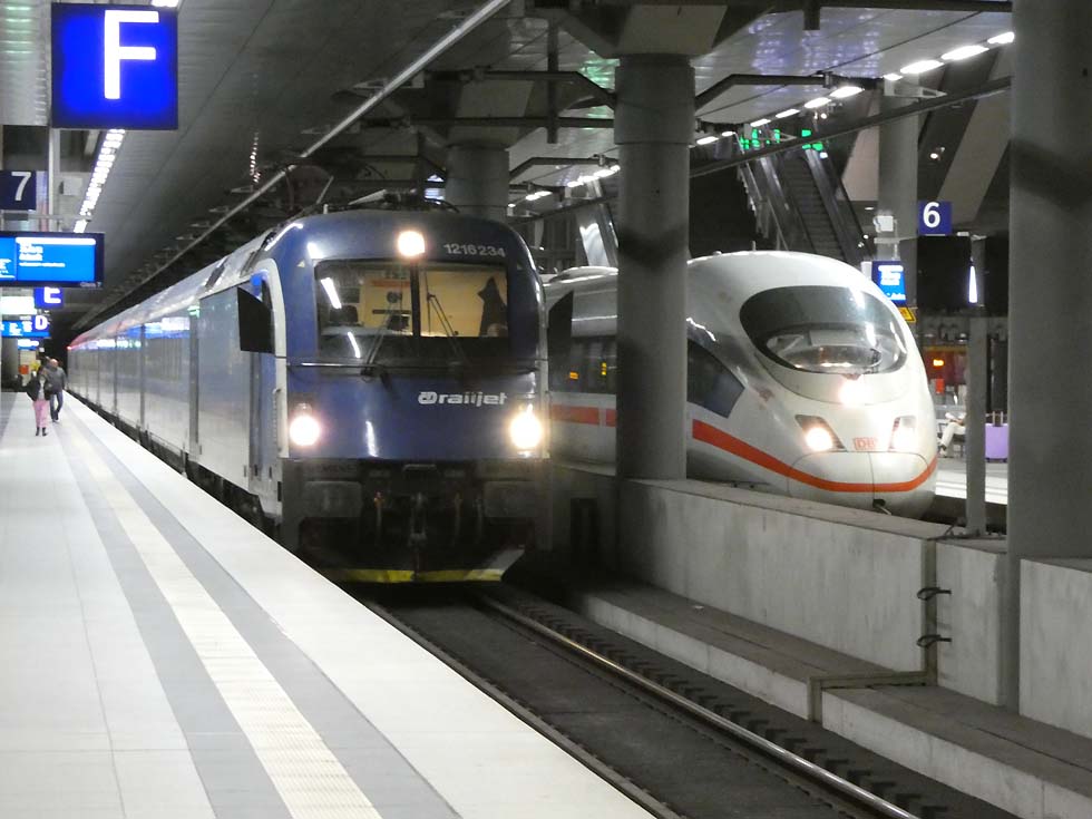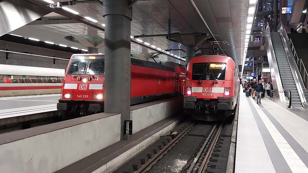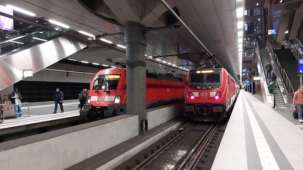 ![]() Einige Sichtungen aus Berlin: 101 028-9 mit dem Nightjet nach Zürich mit 20 min. Verspätung ![]() 1216 234-5 CD Railjet von ÖBB als EC nach Prag ![]() 147 006 mit dem FEX zum Flughafen BER ![]() 182 006 mit Dosto Wagen steht neben der 147 006 ebenfalls mit Dosto Wagen ![]() 193 294 CD mit dem EC von Prag kommend eingefahren ![]() Tz 9224 beim Halt im Hauptbahnhof Berlin ![]() 146 269 neben 182 018 als FEX zum Flughafen BER ![]() 146 274 mit RE Dosto Wagen und Richtungswechsel ![]() 146 280 endend im Berliner Hauptbahnhof ![]() 403 057 ICE neben 1216 234 mit dem EC Railjet ![]() 4110 611 (TZ111) als IC 297 nach Wien Hbf ![]() 445 110 ODEG als RE 8 nach Baruth ![]() 1216 234-5 CD mit dem Railjet nach Prag ![]() 147 003 mit Doppelstockwagen als FEX zum BER ![]() Berliner S-Bahn TZ 1 als S7 nach Ahrensfelde mit alte Lackierung, Steuerwagen als 481, Mittelwagen als 482 ![]() Berliner S-Bahn TZ 17 begegnet TZ 1, jeweils als S7 ![]() Berliner S-Bahn TZ 59 als S7 nach Potsdam Hbf mit neuer Lackierung Text und Bilder: Klaus Günther |