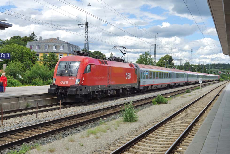 1116 078 mit dem EC 112 in Traunstein, Lok vorne, 22.07.2025