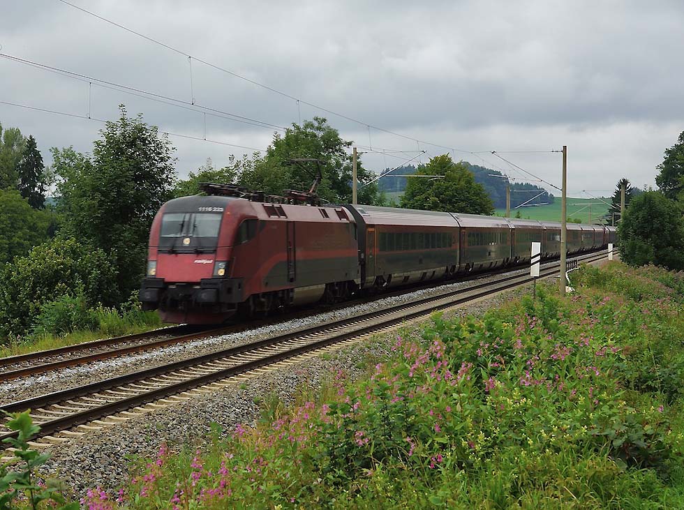 1116 223 mit Railjet durch Vachendorf, 21.08.2025