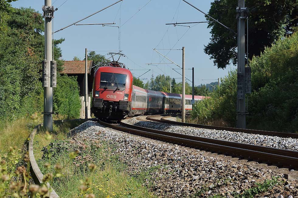 1116 104 mit dem EC 218 in Vachendorf, Lok vorne, 19.08.2025
