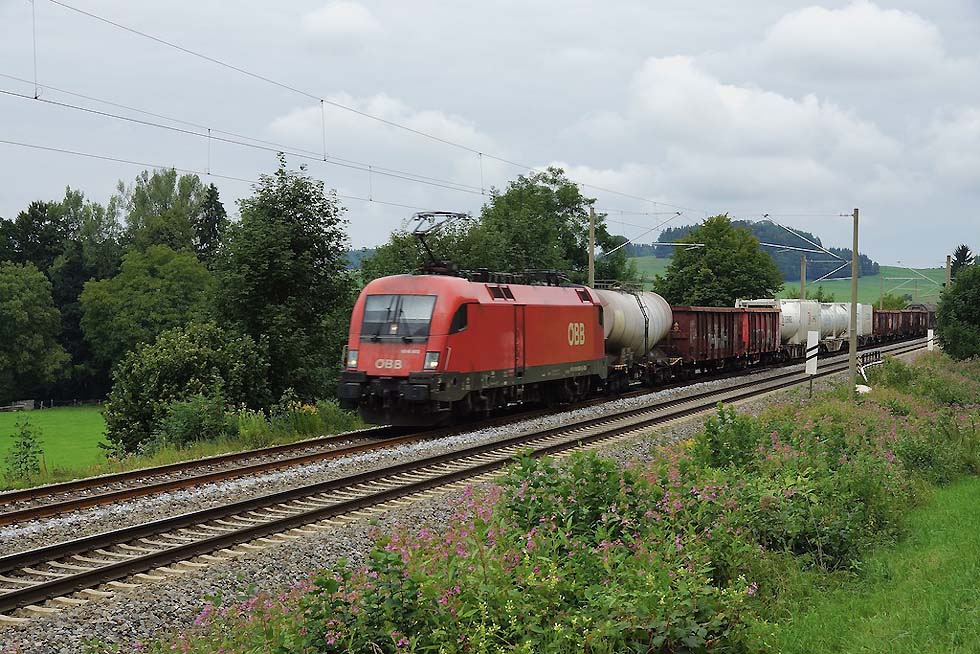 1016 002 mit Güterzug durch Vachendorf, 22.08.2025