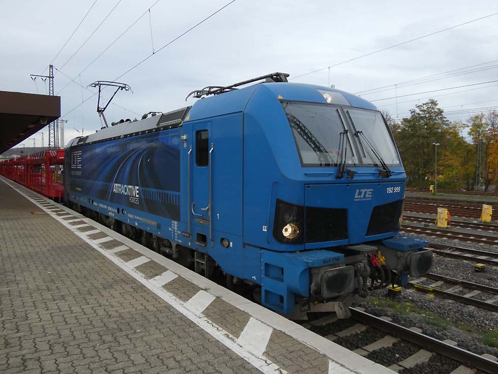 192 999-1 mit leeren Autotransport hält in Göttingen und muss auf neuen Lokführer warten; 31.10.2025
