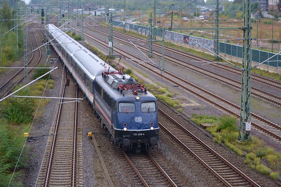 110 469 TRI als Verstärker auf der RB48, Einfahrt Opladen, 30.09.2020