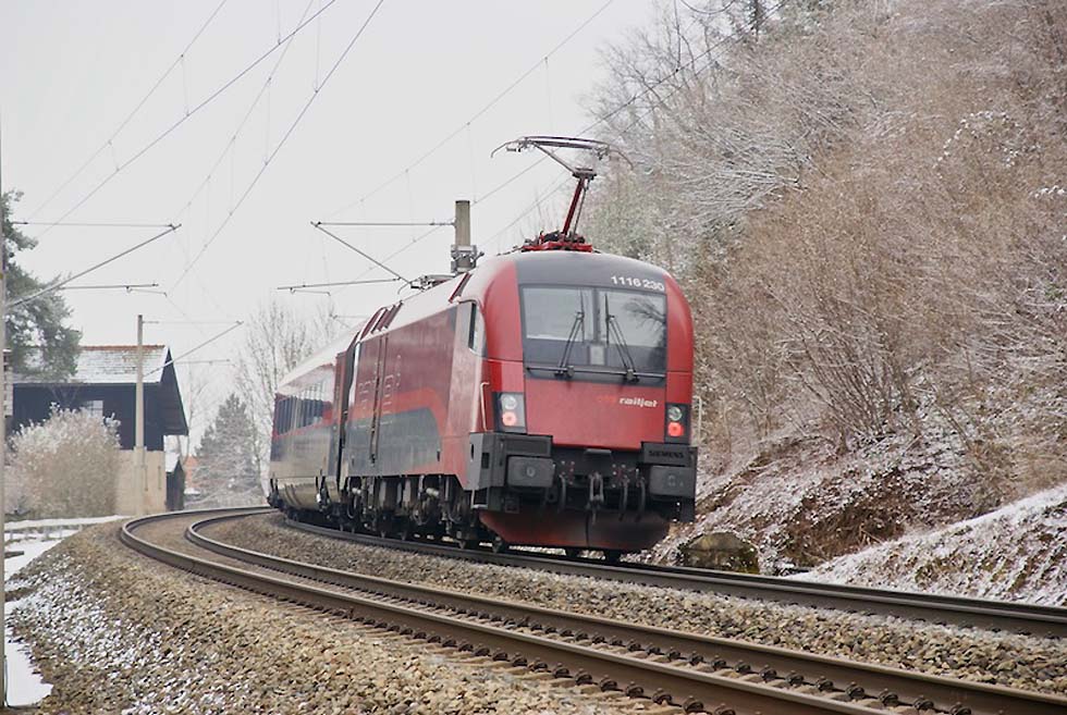 ÖBB 1116 230 mit einem Railjet Richtung Salzburg unterwegs, Vachendorf, 31.01.2021