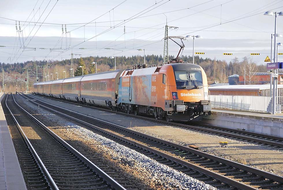 ÖBB 1116 229 mit dem Railjet RJ 111 verläßt gerade Traunstein, 08.02.2021.