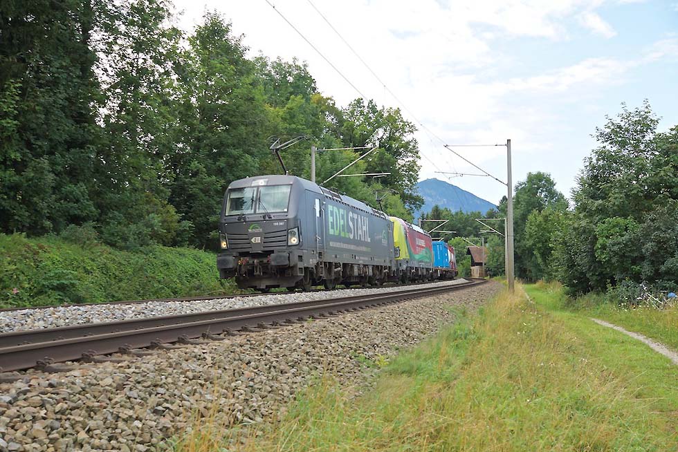 193 267 mit KLV durch Vachendorf, 16.08.2023.